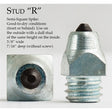 R) Semi-Square Spike: Good-to-dry conditions (front or behind). Use on the outside with a dull stud of the same height on the inside.