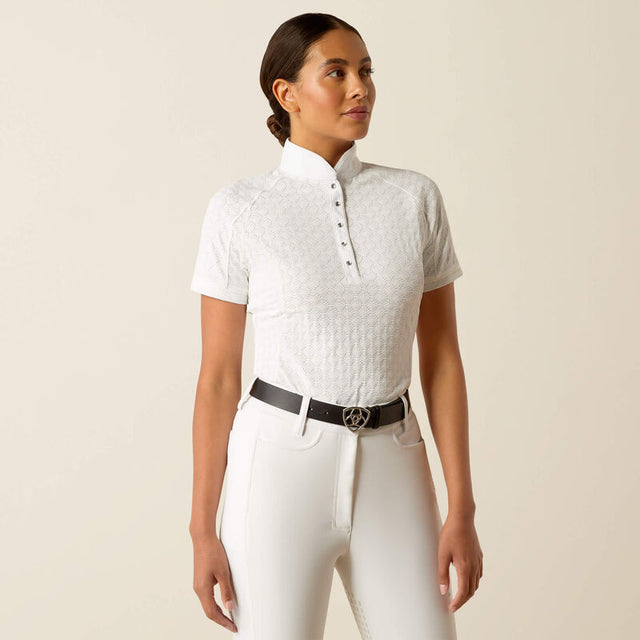Stand out and stay cool this show season in Showstopper X. Crafted from breathable, floral mesh fabric with just-right stretch and finished with crystal snaps and a shimmery logo, it's an elevated take on our rider-loved show shirt.